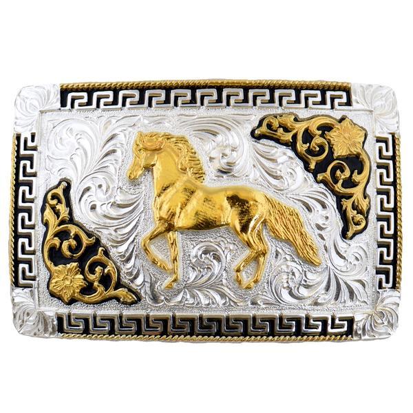 METAL BUCKLE FIGURE HORSES AND FLOWERS WD020