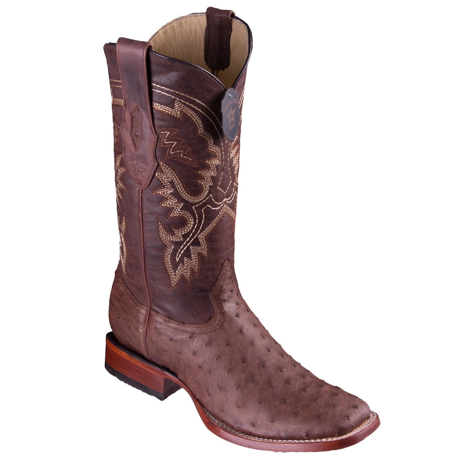 Los Altos Men's Ostrich Wide Square Boots - Brown Greasy Finish