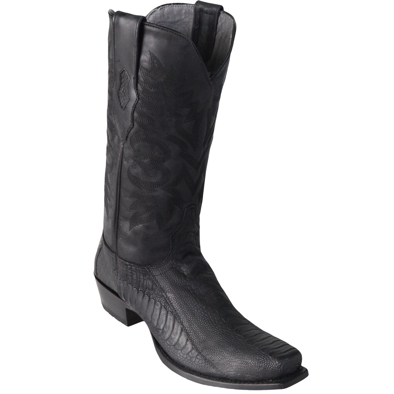 Men's Black Ostrich Leg Square 7-Toe Cowboy Boots - Greasy Finish