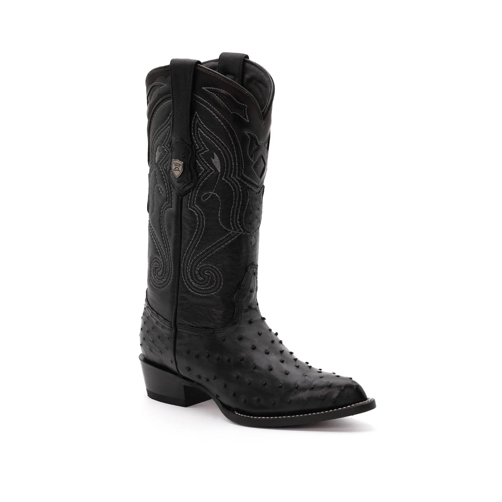 Step into timeless Western elegance with the Wild West Boots Men's Cowboy Boot, crafted from premium full quill ostrich leather for superior comfort and durability. Featuring a classic J-toe and a sleek black finish, these boots blend rugged durability with refined style. Perfect for both formal occasions and everyday wear, they deliver top-tier craftsmanship and all-day comfort.