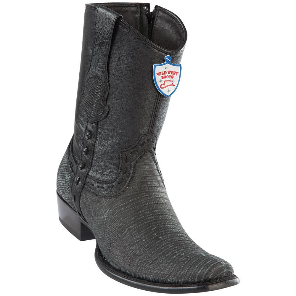 Wild West Boots Mens Genuine Leather Lizard Skin Dubai Toe Short Boots Color Sanded Black