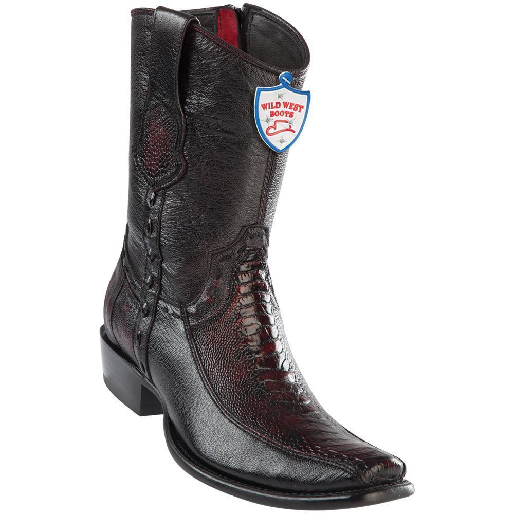 Wild West Boots Mens Genuine Leather Ostrich Leg and Deer Dubai Toe Short Boots Color Black Cherry