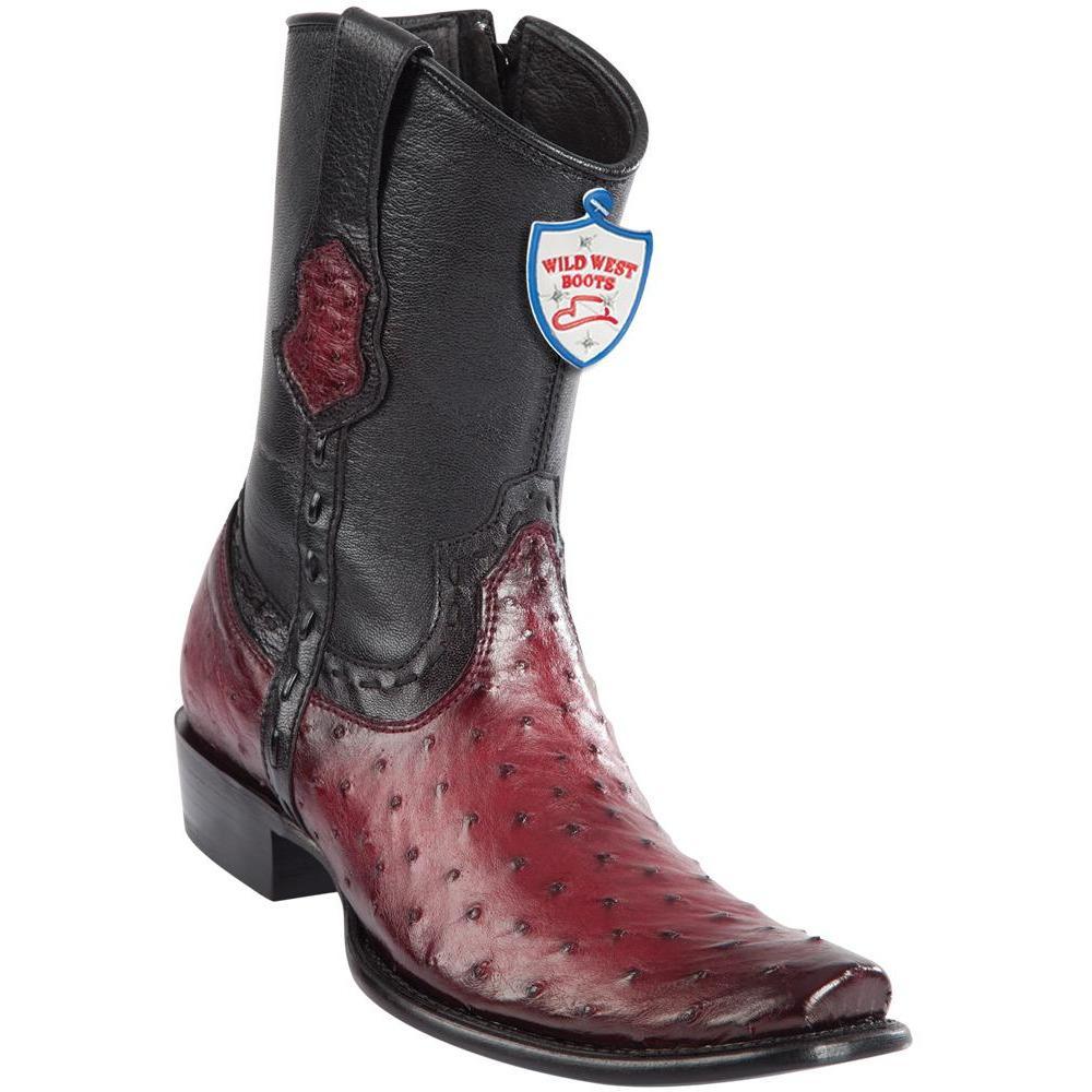 Wild West Boots Mens Ostrich Dubai Toe Short Boots Color Faded Burgundy