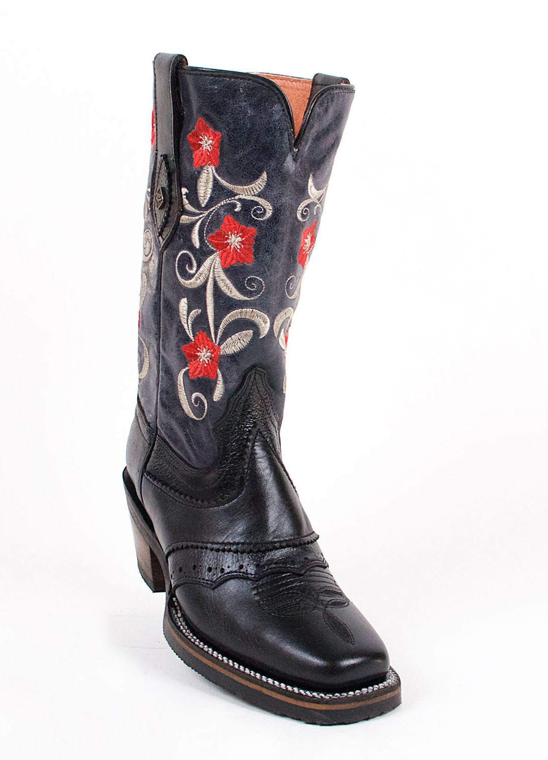 Quincy Boots Womens Crazy Leather Floral Black Rodeo Toe Western Boot