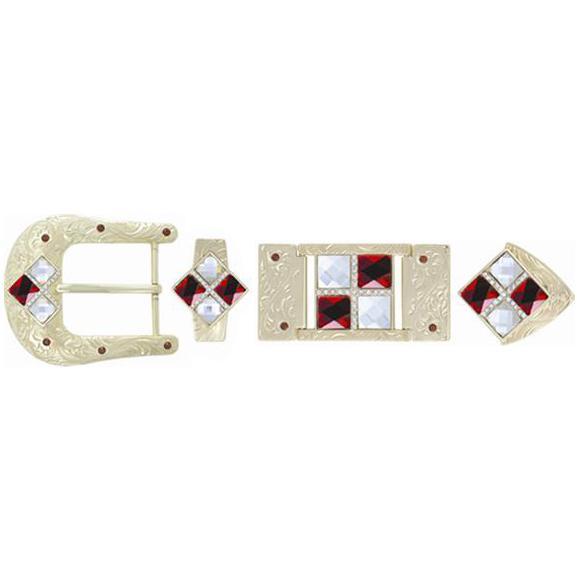 Silver Plated 4 Red/White Stone Design Belt Hardware BK3112