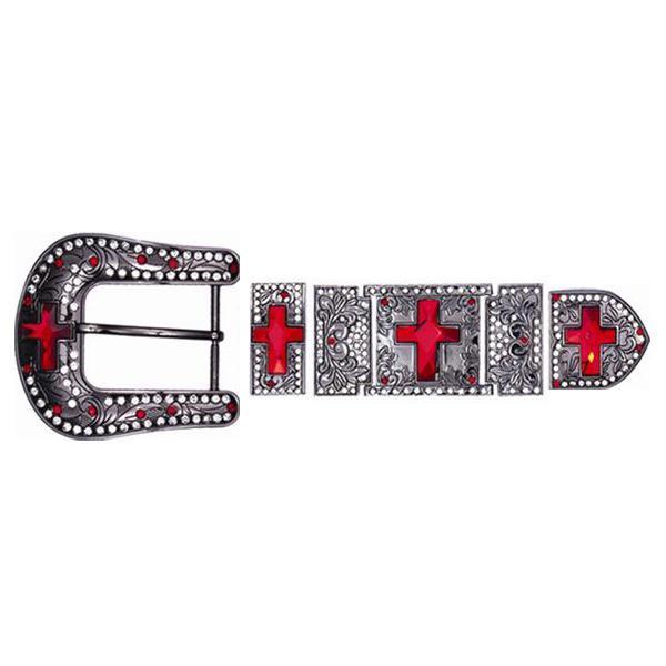 Black with Red Cross Stones Design Unisex Belt Hardware BK4512