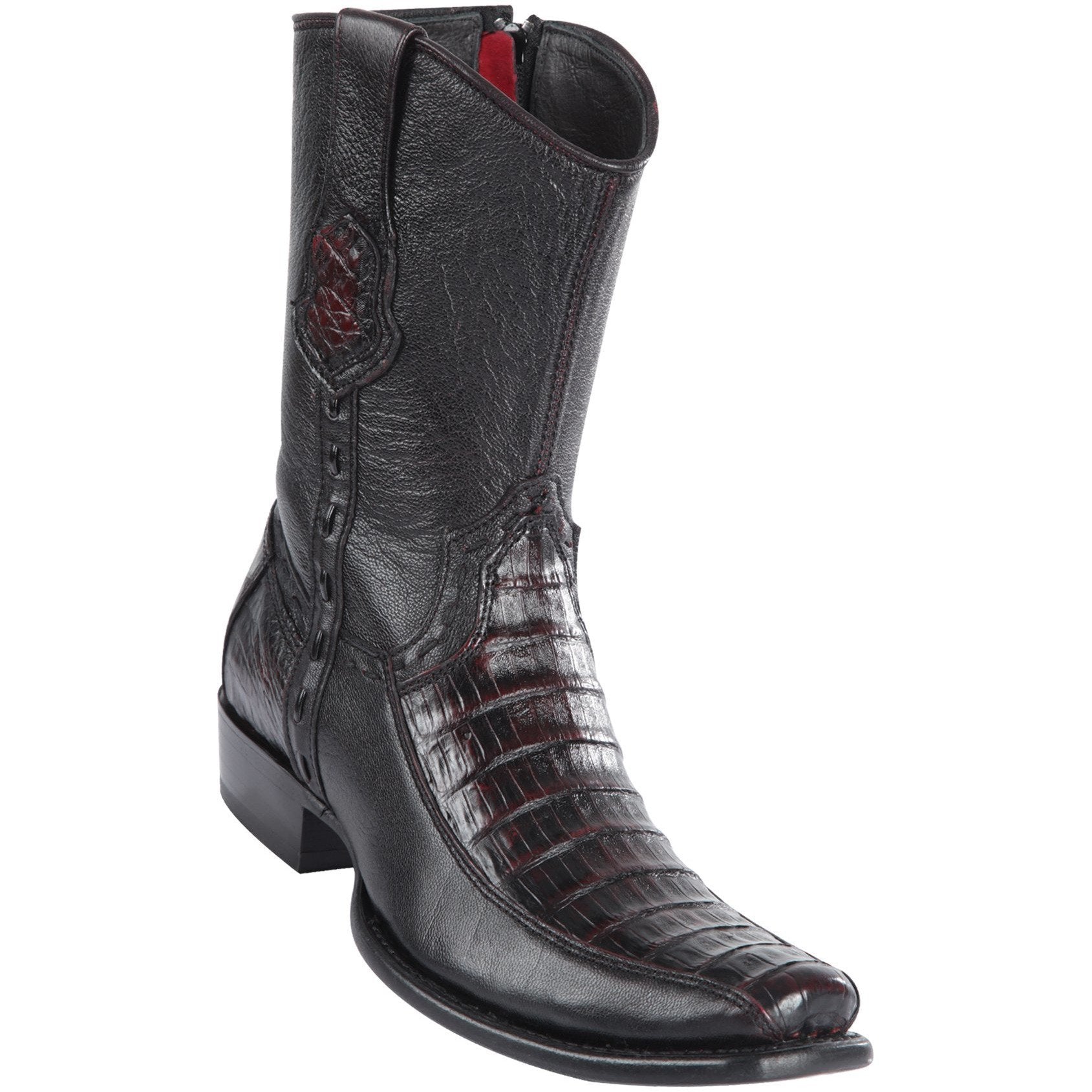 Wild West Boots Mens Genuine Leather Caiman Belly and Deer Dubai Toe Short Boots Color Black Cherry