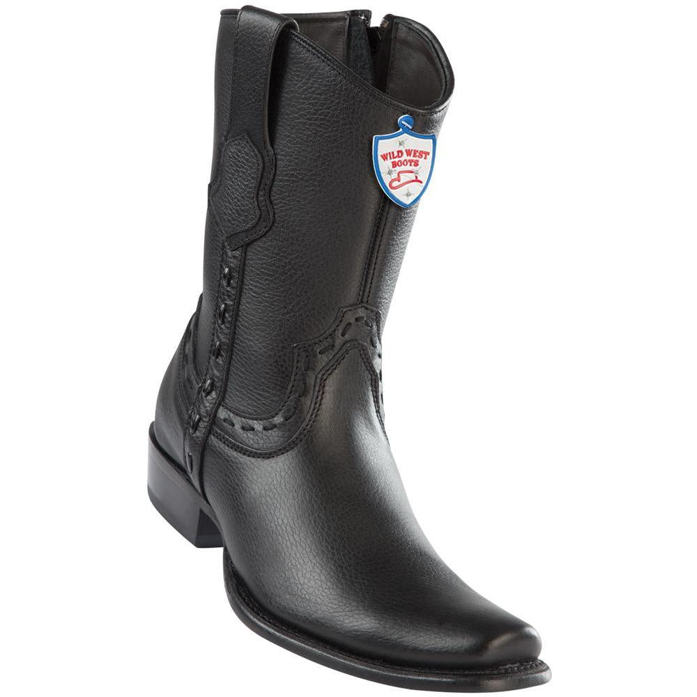 Wild West Boots Mens Genuine Leather Grisly Leather Dubai Toe Short Boots Color Black