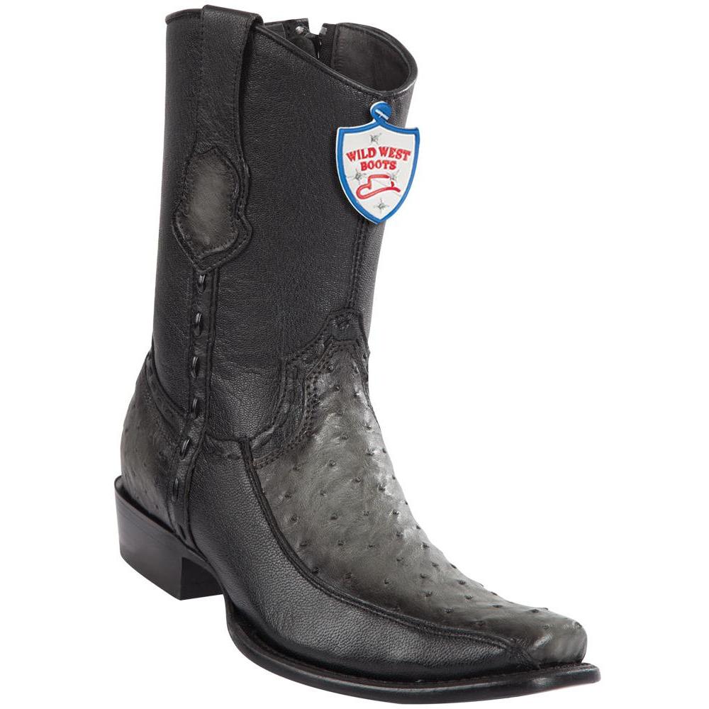 Wild West Boots Mens Genuine Leather Ostrich and Deer Dubai Toe Short Boots Color Faded Grey