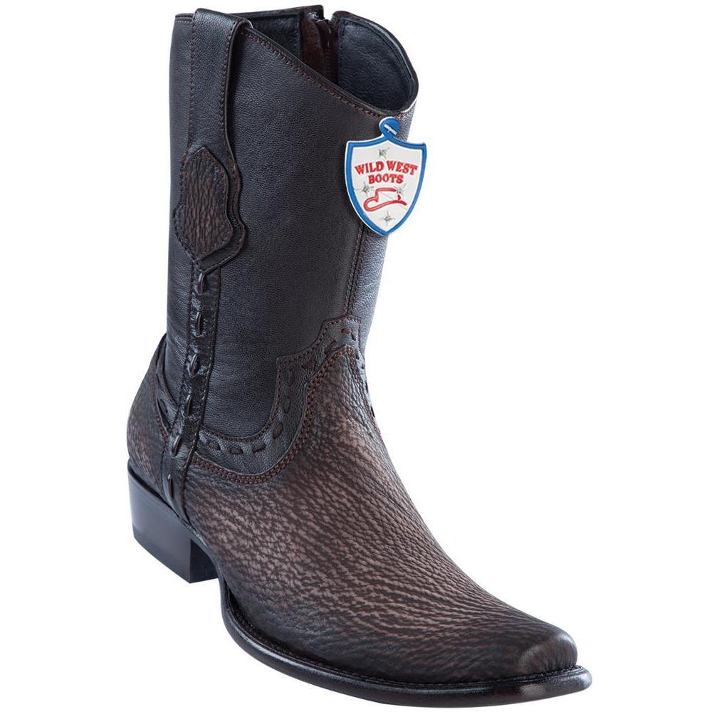 Wild West Boots Mens Genuine Leather Shark Skin Dubai Toe Short Boots Color Faded Brown