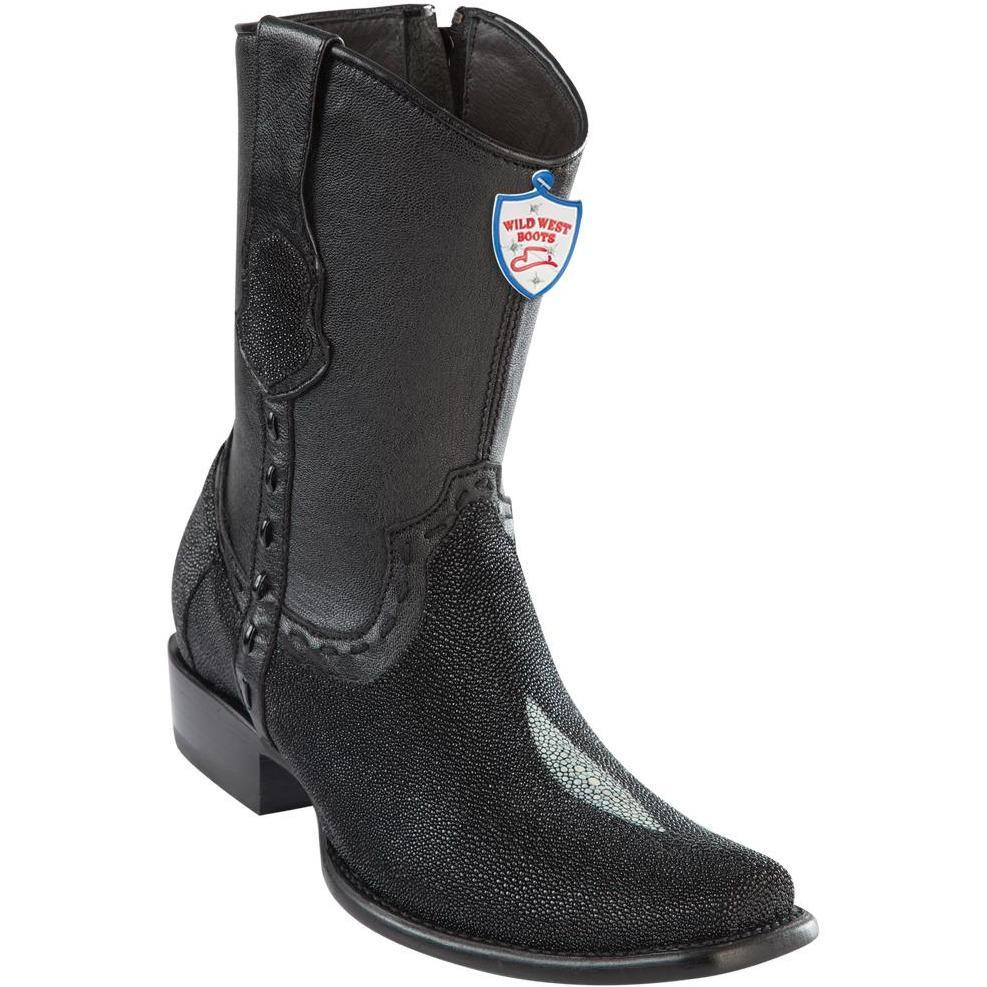 Wild West Boots Mens Genuine Leather Stingray Single Stone and Deer Dubai Toe Short Boots Color Black