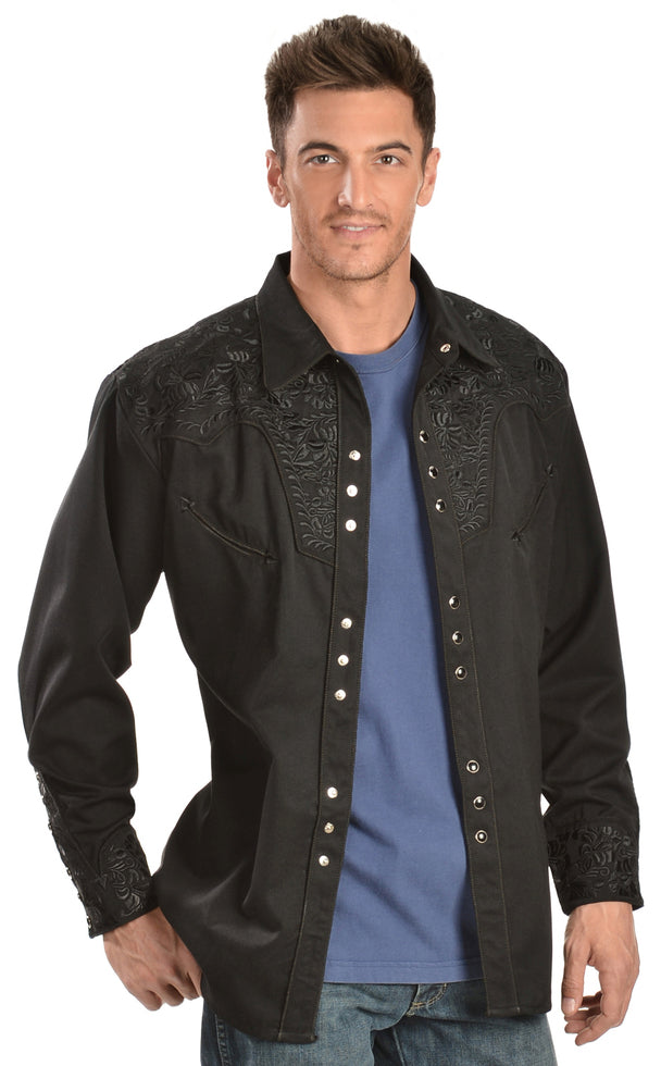 Scully Floral Embroidery Black Retro Western Shirt - Big & Tall