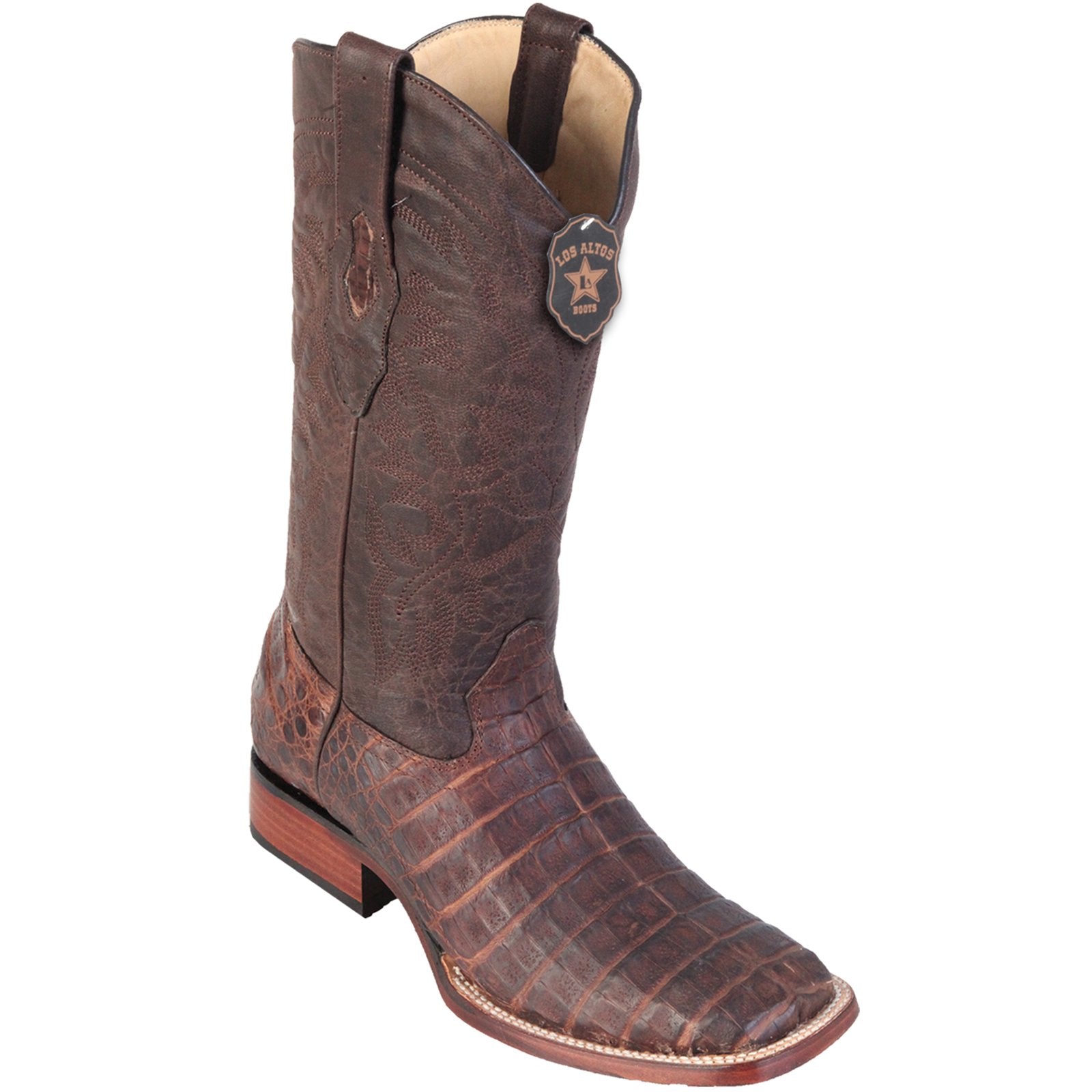 Los Altos Caiman Belly Wide Square Toe Cowboy Boots - Brown Grease Finish