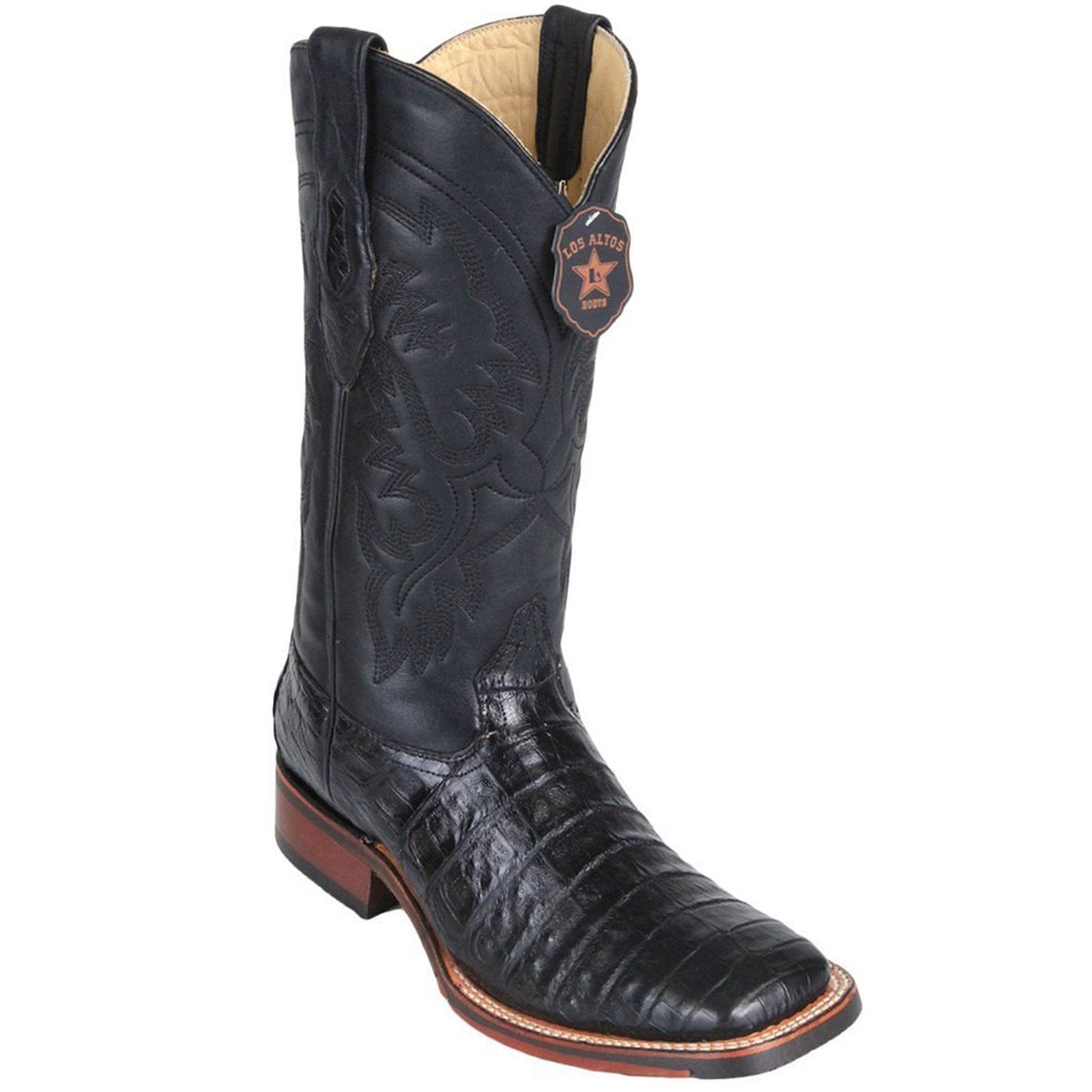 Los Altos Men's Black Caiman Belly Wide Square Toe Boots