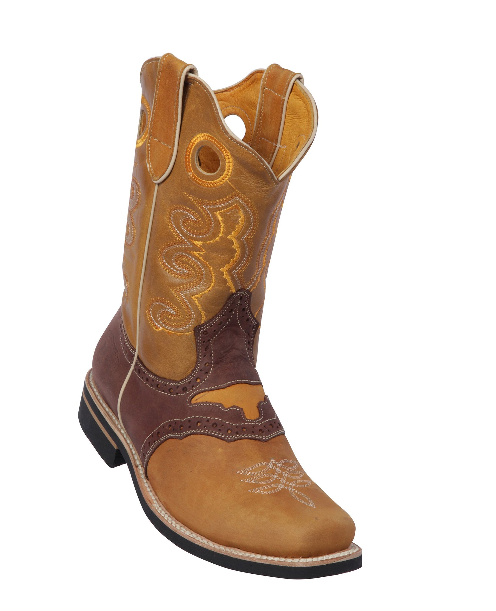 Potro Rebelde Womens Grasso and Crazy Leather Honey/Chocolate Rodeo Toe Western Boot