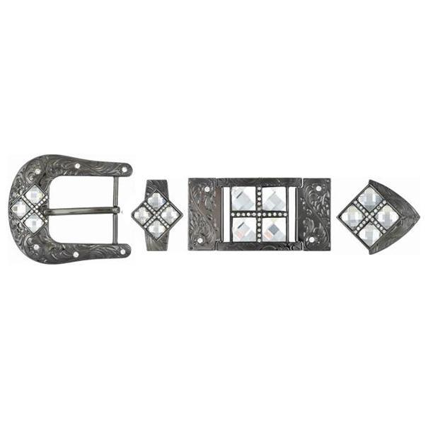 Black Chrome 4 White Stone Design Belt Hardware BK3228