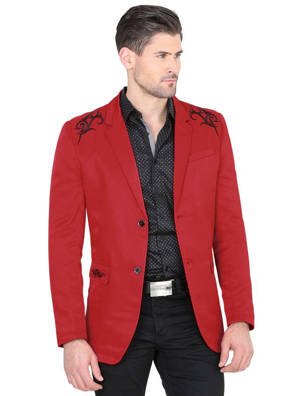 Modern Regular Fit Cut Fabric Whit Design Blazer - Red