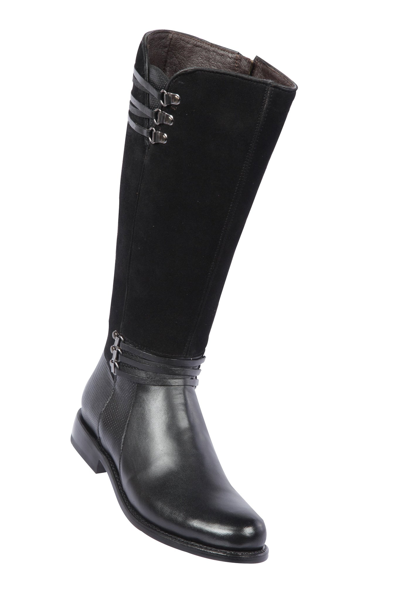 Quincy-Boots-Womens-Fashion-Goat-Leather-Suede-Black-Round-Toe-Western-Boot