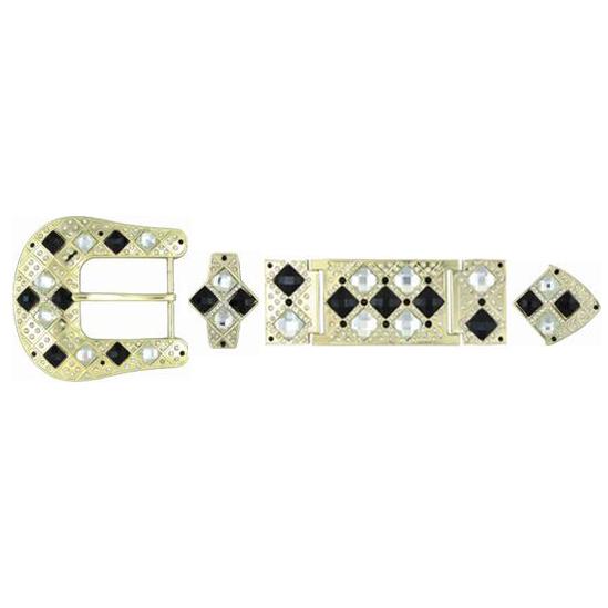 Silver Plated Black/White Stones Design Unisex Belt Hardware BK3405