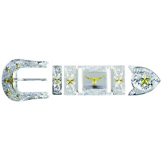 Silver Plated Bull Stones Design Unisex Belt Hardware BK3736
