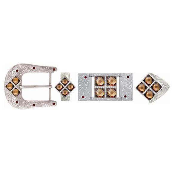 Silver Plated 4 Bronze Stone Design Unisex Belt Hardware BK3334